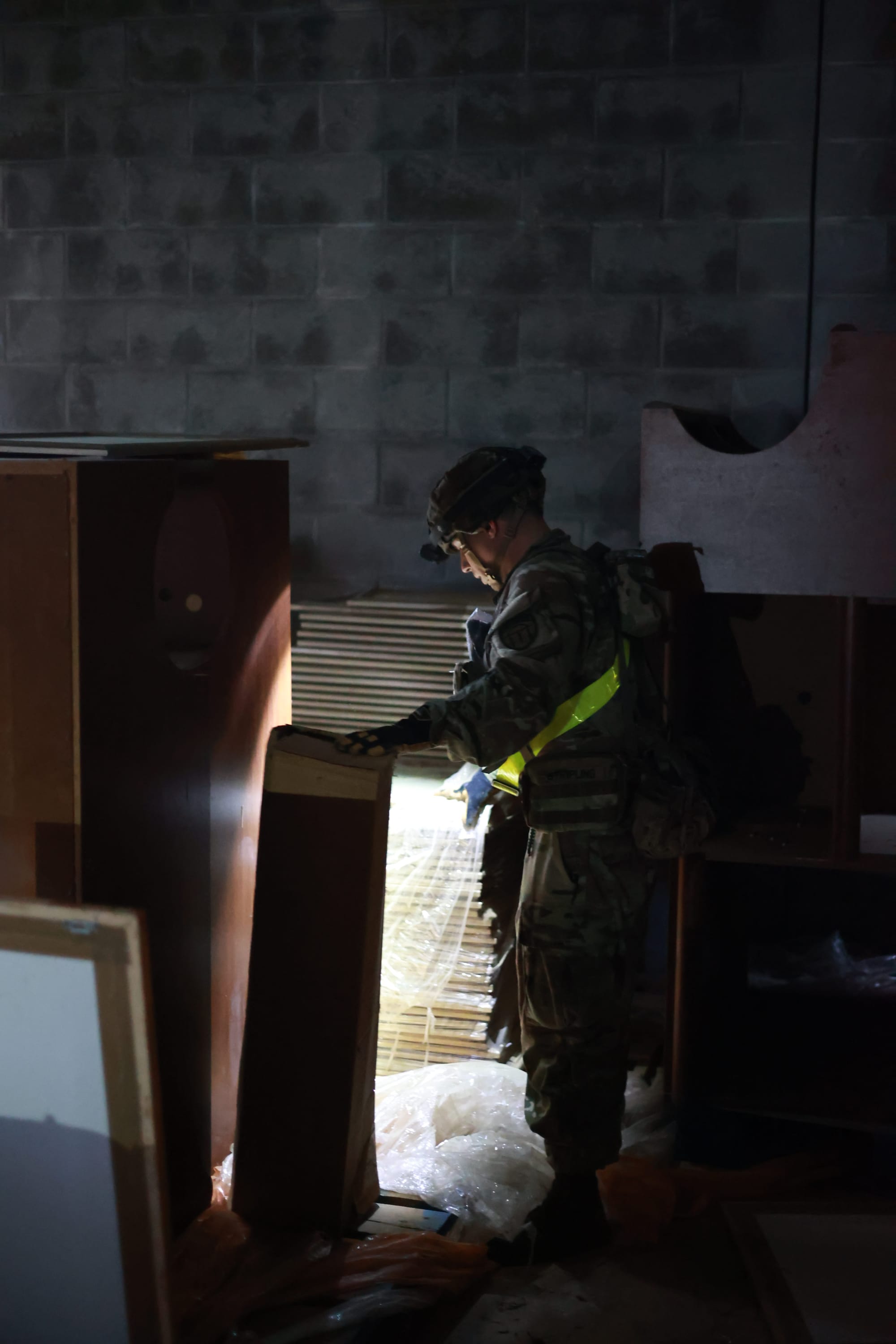 Soldiers search underground tunnels and facilities for victims. Photos by SSG Kerry Hatcher