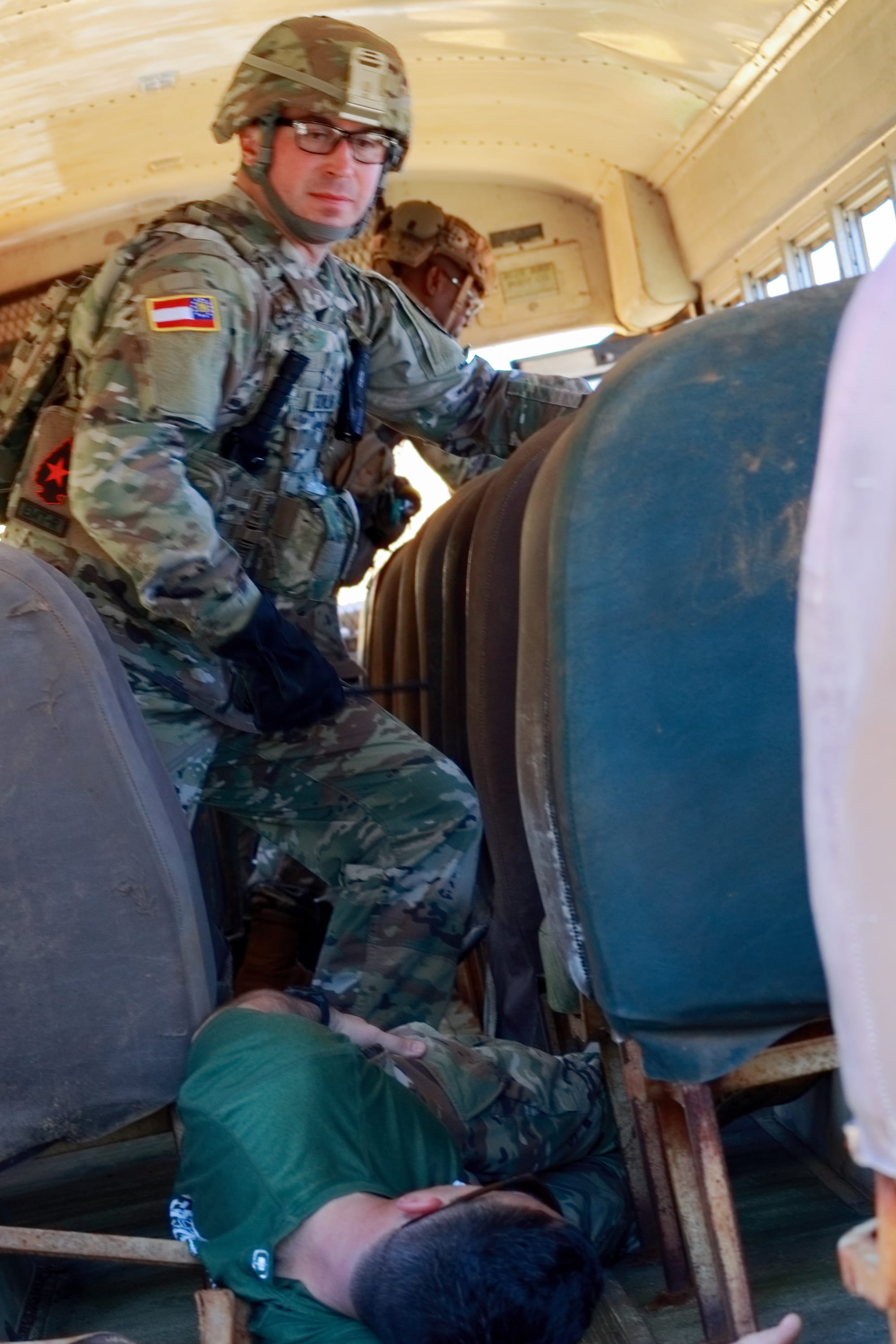 GSDF soldiers search a simulated derailed subway train. Photos by SSG Kerry Hatcher