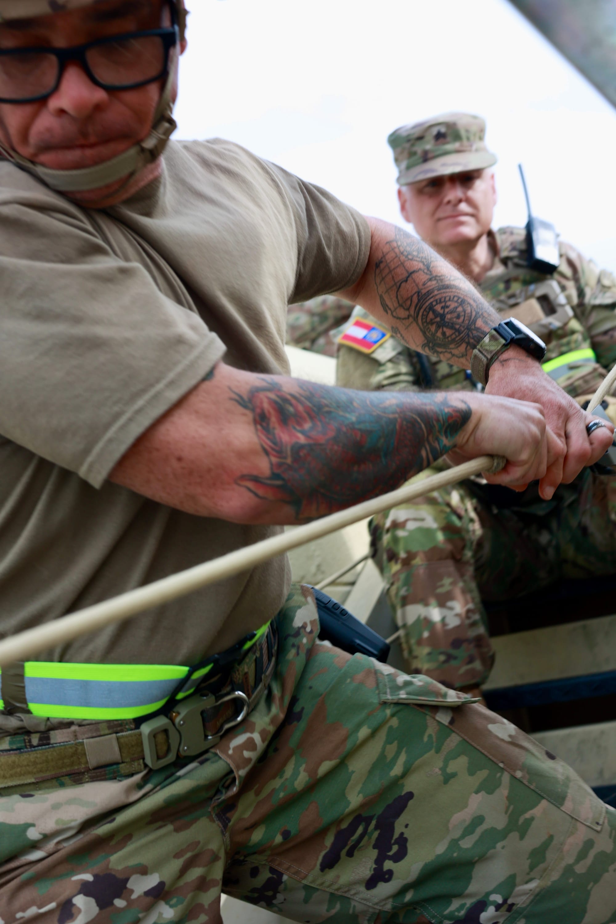 One of the most challenging scenarios at Patriot 25 was the collapsed bridge simulation. GSDF soldiers were tasked with searching for survivors trapped in vehicles or stranded on unstable sections of the bridge. The team carefully navigated through twisted metal and unstable concrete, using their skills to detect signs of life beneath the debris. This exercise emphasized the importance of structural awareness and coordination with engineers to ensure safe extractions.